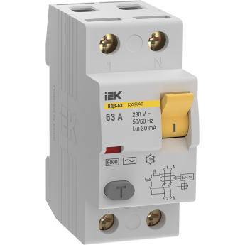 Выключатель дифференциальный (УЗО) IEK KARAT ВД3-63 2P 63А 30мА 6кА тип AC